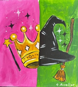Feeling like defying gravity on Sunday morning? We can’t help with that, but you can have a seat at our paint party and paint this piece inspired by witches from the East and West. Ed will paint with you step-by-step through this!