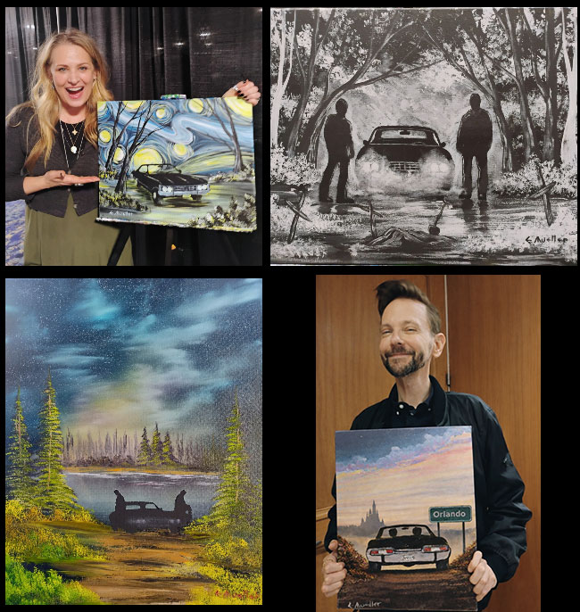 Join us for a fun and relaxing painting class on Thursday and Friday, as well as Sunday morning, as you embrace your creative self and paint a Supernatural-themed painting on a 12×16″ canvas, with all supplies provided. Instructor Ed Mueller of ArtParty4U will be on hand to guide you step-by-step through these beginner-friendly paintings. NO EXPERIENCE NECESSARY! These are a great memento of the convention and they’re suitable for framing, gifting, or even having autographed throughout the rest of your convention experience!